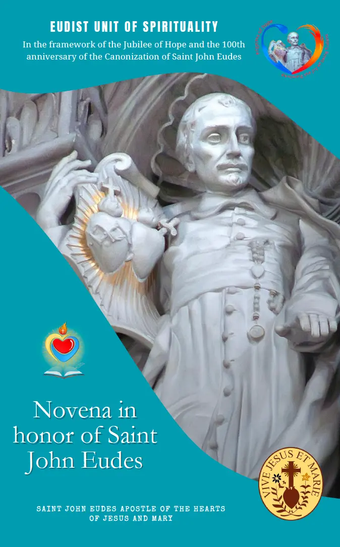 With deep joy and gratitude, we prepare to live this novena in honour of Saint John Eudes, in the context of the Eudist Jubilee Year marking the 100th anniversary of his canonisation and the Jubilee of Hope celebrated by the whole Church. This time of grace invites us to rediscover the richness of Eudist spirituality and to renew our commitment to live as true "pilgrims of hope," inspired by the example and teaching of this great saint. John Eudes was a tireless apostle of the Heart of Jesus and Mary, and a teacher of Christian love who continues to lead us towards the fullness of life in God.