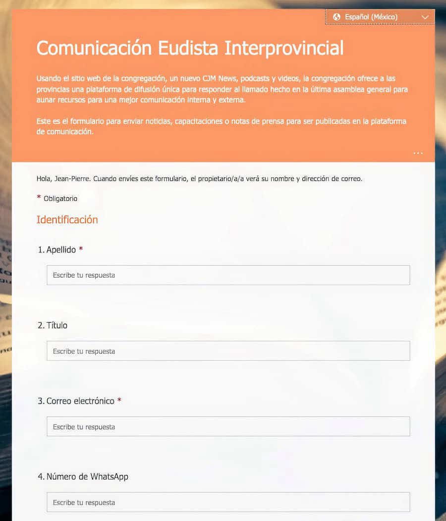 Necesitábamos tenores que participaran en el contenido de la plataforma. También dieron la bienvenida a nuestra iniciativa la Sra. Aude Bauguin, de la Provincia de Francia, el Sr. Pierre Loiselle, responsable de los asociados de Quebec, el Sr. Steve Marshall, director de Promoción de la Misión en San Diego, el Padre Edem Afoutou, consejero general y Margarita Osorio, Coordinadora Interprovincial de los asociados. Muchas otras colaboraciones están por llegar.
